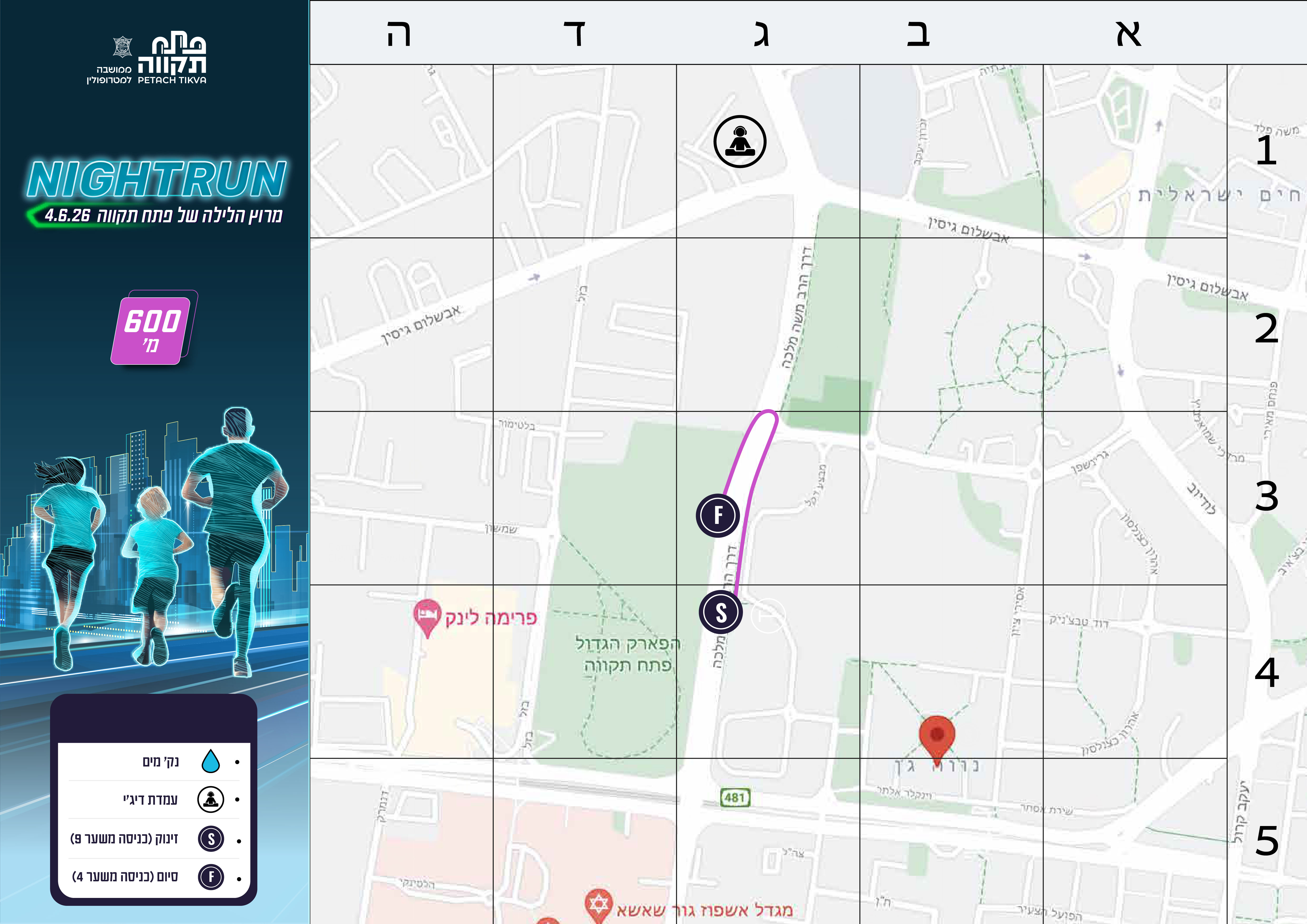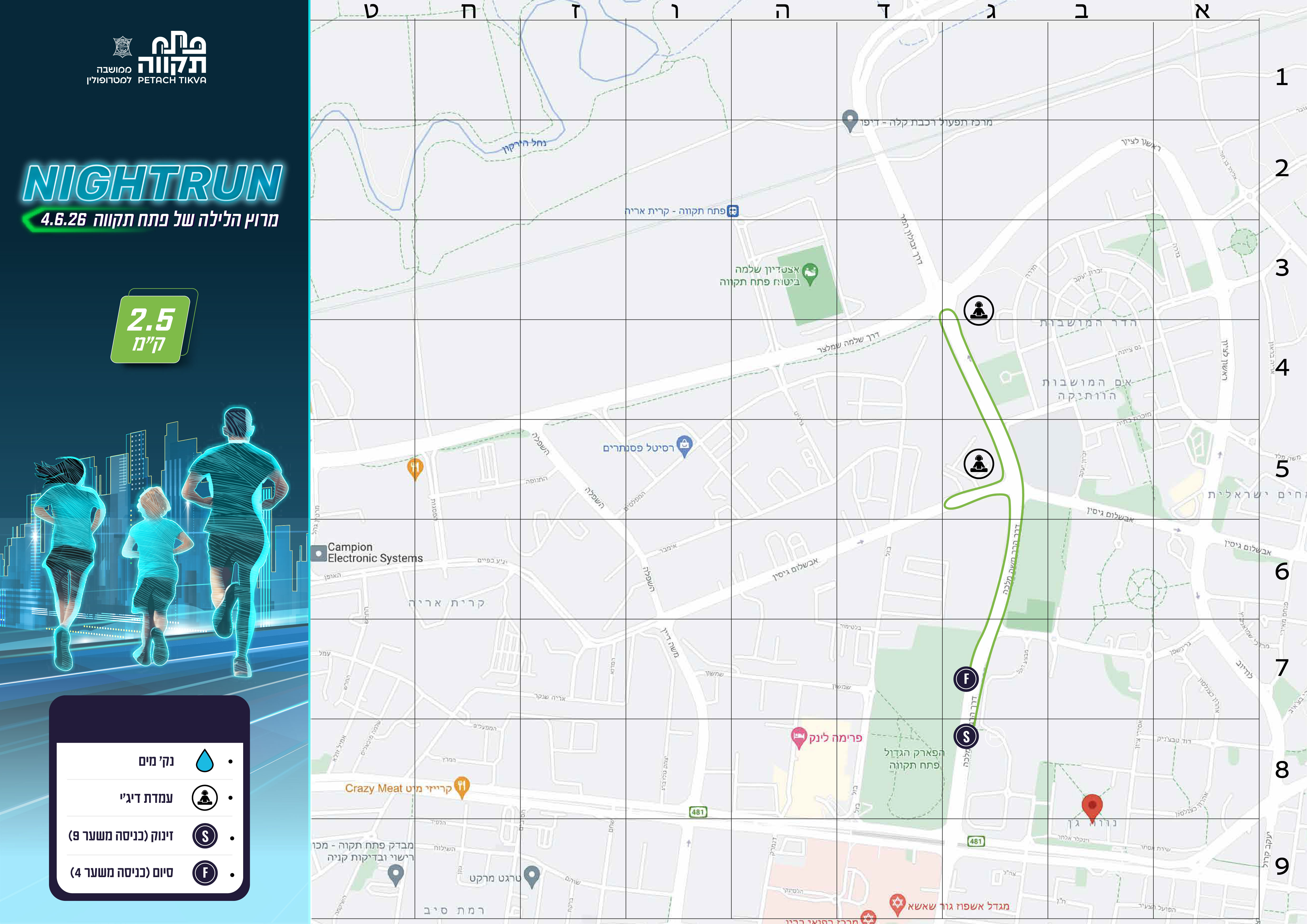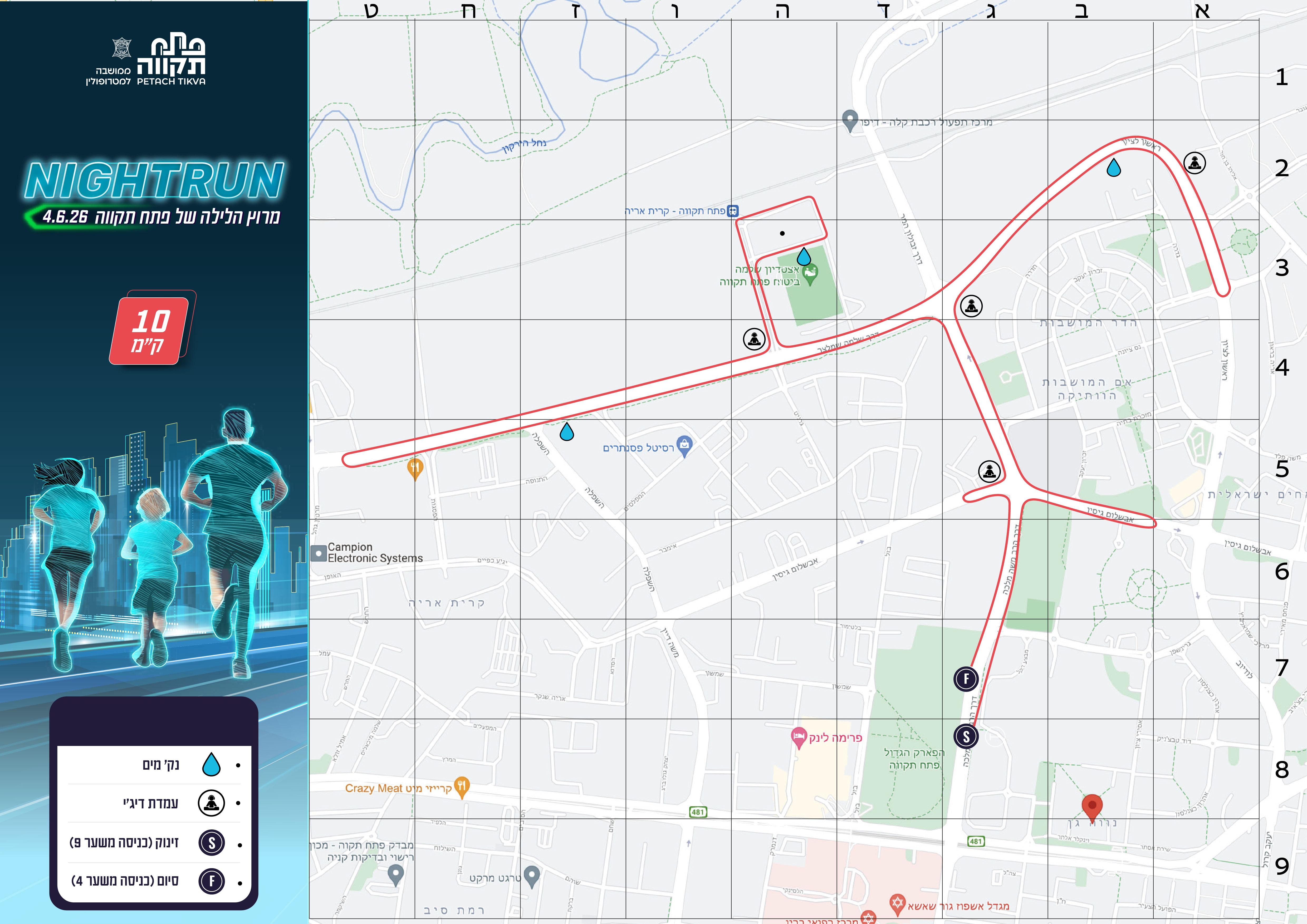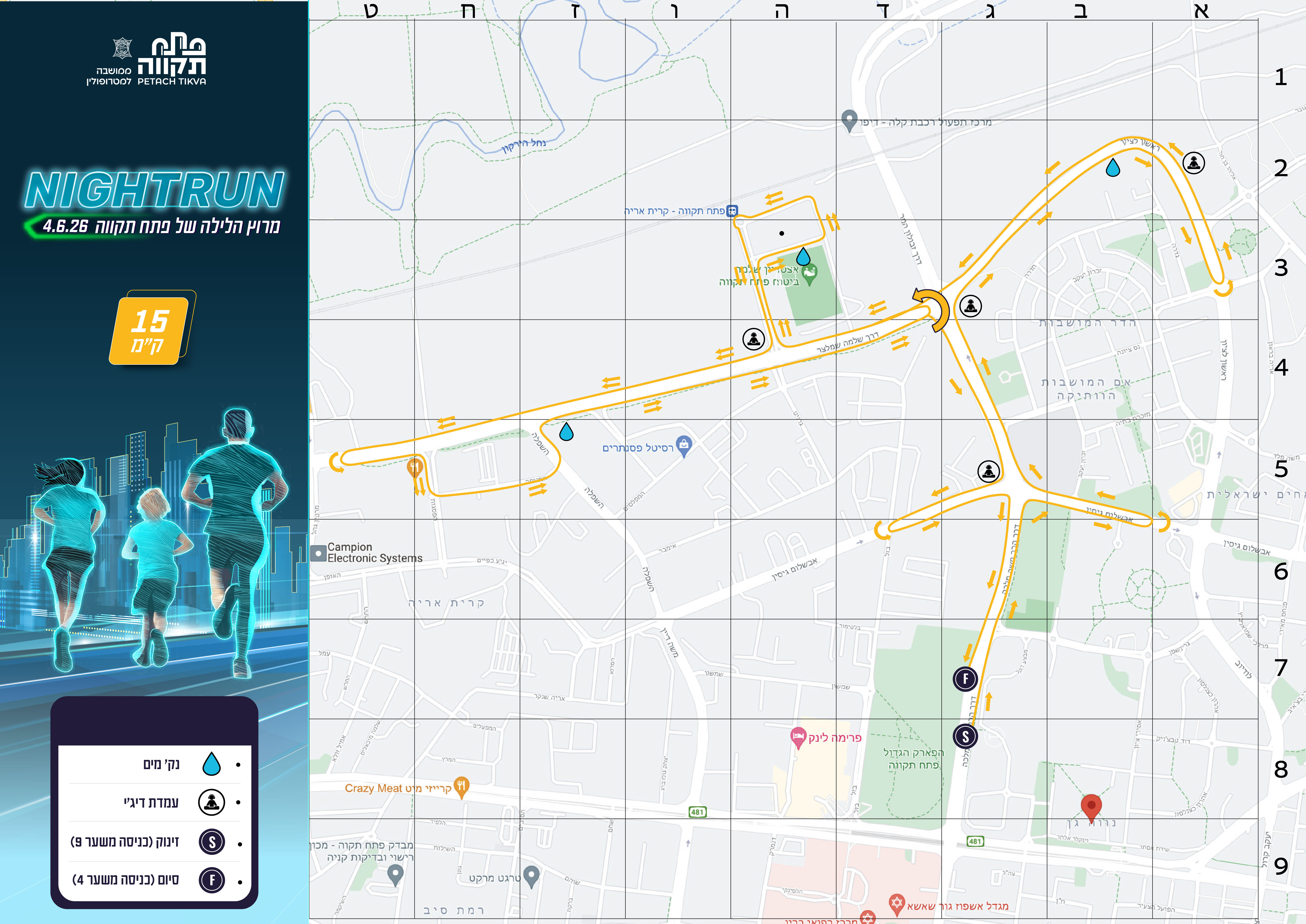 מקצה 5 ק"מ - עליה 37 מטר ירידה 44 מטר. מקצה 10 ק"מ - עליה 53 מטר ירידה 59 מטר. מקצה 15 ק"מ - עליה 69 מטר ירידה 74 מטר. *המסלול בכפוף לאישור משטרת ישראל.